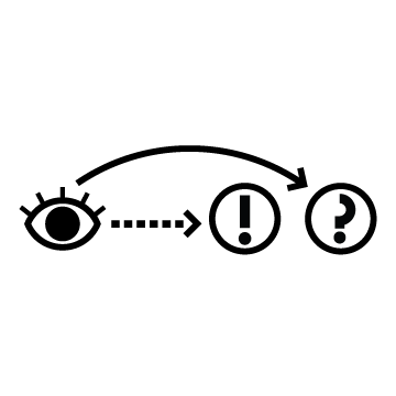 yo veo un ojo del que emanan, una flecha de trazo discontinuo que señala una admiracion y otra, continua, señalando a una interrogación.