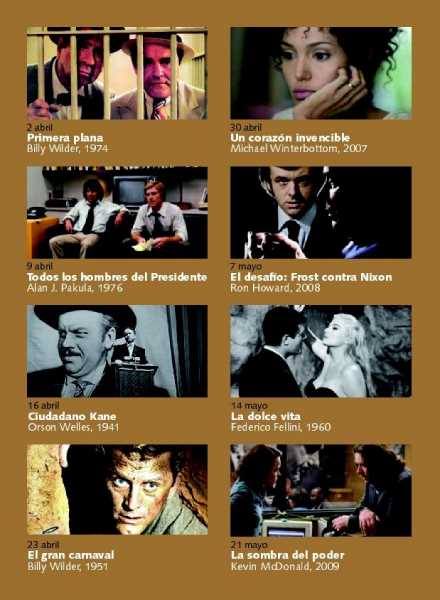 Este ciclo sobre el cuarto poder en pantalla incluye otras visiones de la profesión periodística, desde el peligro que corren los corresponsales de guerra, que se juegan la vida para informar de lo que ocurre en remotos lugares del mundo (“Un corazón invencible”, en la que la mejor Angelina Jolie borda el papel de la esposa de Danny Pearl, secuestrado por los talibanes en Pakistán) hasta la imagen más puramente empresarial (“Ciudadano Kane”, obra maestra indiscutible de Orson Welles).