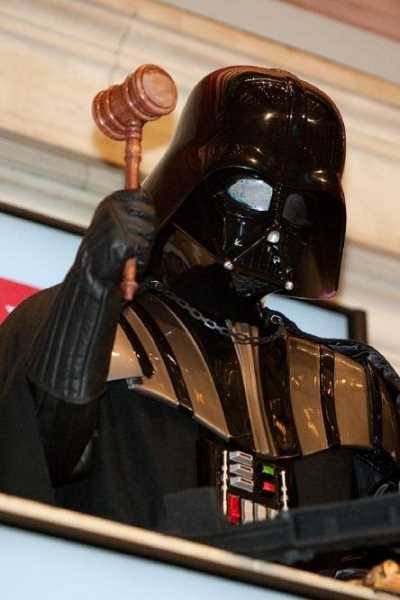 Ahora lo entiendo todo. Darth Vader abriendo la sesión de la Bolsa de Nueva York. El poder del Lado Oscuro se expande por el mundo. Ten miedo. Mucho miedo. Menos mal que nos encanta Darth Vader y sabemos que, en el fondo, ni tiene el alma alquitranada, ni es tan terrible. ¡Es un pedazo de pan!
