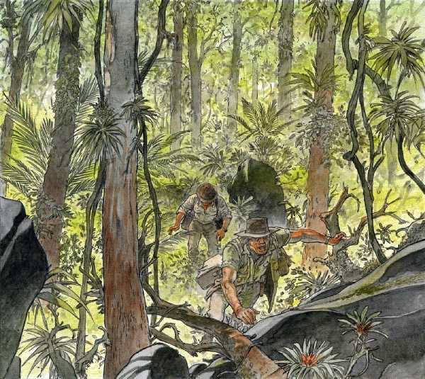 Menos mal que Hermann ya ha dibujado diferentes viñetas que muestran la grandeza de la vida natura en los parques africanos: animales en escorzos, vegetación, paisajes…