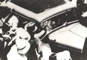 Recién muertos, el coche repleto de agujeros de bala en el que fallecieron fue exhibido ante el público… con sus cadáveres aún dentro. Y la gente, enfervorizada, se apelotonaba y peleaba, tratando de hacerse con algún recuerdo de los famosos gángsteres, fuera un mechón de pelo o un trozo de ropa. De la misma manera, miles de personas pasaron junto a sus cadáveres, expuestos públicamente en Dallas, antes de ser enterrados.