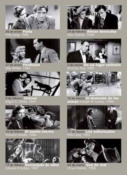 Con entrada libre hasta completar el aforo y proyectadas en versión original subtitulada, para que los espectadores puedan disfrutar de las películas tal y como fueron concebidas por sus directores; la selección de diez películas que componen este ciclo abarca títulos producidos entre 1936, con la llegada de los exiliados alemanes a Hollywood y 1958, cuando Orson Welles certificó el final del género con su genial “Sed de mal”.