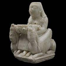 Se trata de una diosa entronizada oferente de origen sirio-fenicio, está flanqueada por sendas criaturas aladas y es una cucada. Igualmente atractivas son las urnas funerarias de la necrópolis de Tútugi que se encuentran en las vitrinas del MAN.