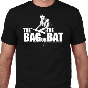 Ese mismo bate con el que amenazó a otro mal bicho, que había robado una bolsa llena de dinero, utilizando una de sus frases más memorables: The Bag or the Bat. Una sentencia tan afortunada que ya es leyenda… impresa en camisetas negras de lo más llamativo. (Más sobre Ray Donovan, AQUÍ)