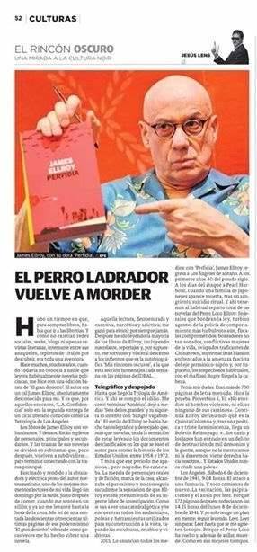 Después he ido leyendo la mayoría de los libros de Ellroy, incluyendo sus relatos, reportajes y, por supuesto, ese tortuoso y visceral descenso a los infiernos que es la autobiográfica “Mis rincones oscuros”, a la que esta sección homenajea cada semana, en las páginas de IDEAL.