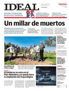 Como lo soy de ese otro anillo, el verde, con abría la portada de IDEAL. El plan es, básicamente, rodear Granada con 200.000 árboles que serán plantados a lo largo de los próximos 10 años. La foto del alcalde pala en mano está muy bien, que hay que predicar con el ejemplo. Por allí andaba también el delegado de la Junta, Pablo García, hablando del compromiso con el medio ambiente del ejecutivo andaluz.