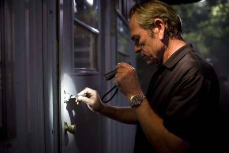 Pero hablemos de lo que vimos. Y lo que vimos fue la cara, el rostro, de Tommy Lee Jones, uno de esos actores que empieza a ser un género en sí mismo y cuyos rasgos faciales deben de ser un reto para cualquier director de fotografía. A Tommy Lee Jones parece que le pesa el mundo. Que lo llevara, entero, sobre sus hombros. Con el peso de las desdichas, muertes y violencias que lo asolan.