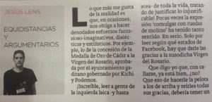 ¡Increíble, leer a gente de la izquierda laica -y hasta atea- de toda la vida, tratando de justificar lo injustificable! Pocas veces la expresión “comulgar con ruedas de molino” ha tenido tanto sentido. En serio. Solo por leer según qué estados de Facebook, hay que darle las gracias a la susodicha Virgen del Rosario.