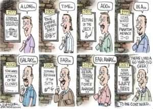 Dos horas y media de puro cine que conectan a nuestro yo de hace cuarenta años con el de ahora mismo y, espero, con el que seremos a medida que sigamos acudiendo, puntualmente, a los futuros estrenos galácticos, incluyendo los spin off de Han Solo y de Obi Wan Kenobi. ¿Se puede pedir más, por 6 euros anuales?