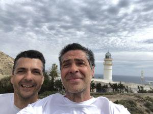 Para este tipo de excursiones prospectivas, mi hermano y utilizamos una técnica que podría ser incluso ancestral: calzarnos las zapatillas y echar a correr. O a trotar, que la subida hasta el faro Sacratif se hace dura.