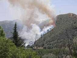 El caso es que, al salir, cuando iba por el Nuevo Los Cármenes, veía una densa nube de humo en lontananza. Un extraño contraste, la Sierra todavía medio cubierta de nieve y sus faldas, ardiendo.