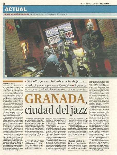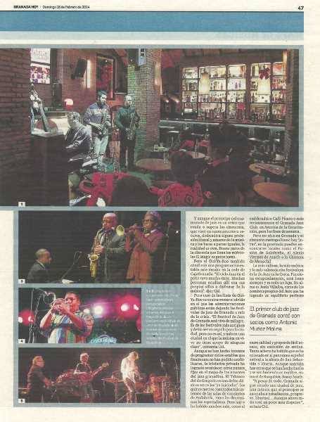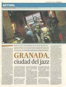¡Impresionante reportaje que ha escrito Belén Rico para Granada Hoy, sobre el jazz en la capital nazarí, publicado el pasado domingo! Y las fotos de Pepe Villoslada, tomadas en el Club Magic, donde se celebran los conciertos organizados por la Asociación de Jazz de Granada Ool Ya Koo; una gozada.