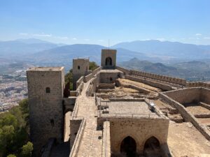 Antes de entrar en la ciudad propiamente dicha, subimos al castillo, que también alberga al Parador jienense. A ese lugar le tengo un cariño especial, que acogió durante muchos años el acto de entrega de los Premios Literarios Jaén de CajaGranada. Y, sin embargo, nunca había visitado el castillo como tal. Las incongruencias de la vida acelerada.