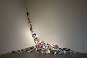 Contemporáneos (2000), instalación de la artista Alicia Martín, incluida en la exposición La fuerza de la palabra. Por desacreditar estas imágenes negativas, de días anteriores. Que amamos los libros. ¡Claro que sí!