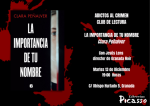 ¿Alguna vez le han ‘obligado’ a participar en un juego que no era su gusto, estimado lector? Póngase en manos de Clara Peñalver y disfrute de ‘La importancia de tu nombre’ mientras sufre con y por Elena, que hay mucho de Patricia Highsmith en esta novela. Y de todo ello hablaremos esta tarde en Librería Picasso, en la última reunión formal de este intenso año del Club de Lectura y Cine de Granada Noir. ¡Esos Adictos al crimen!