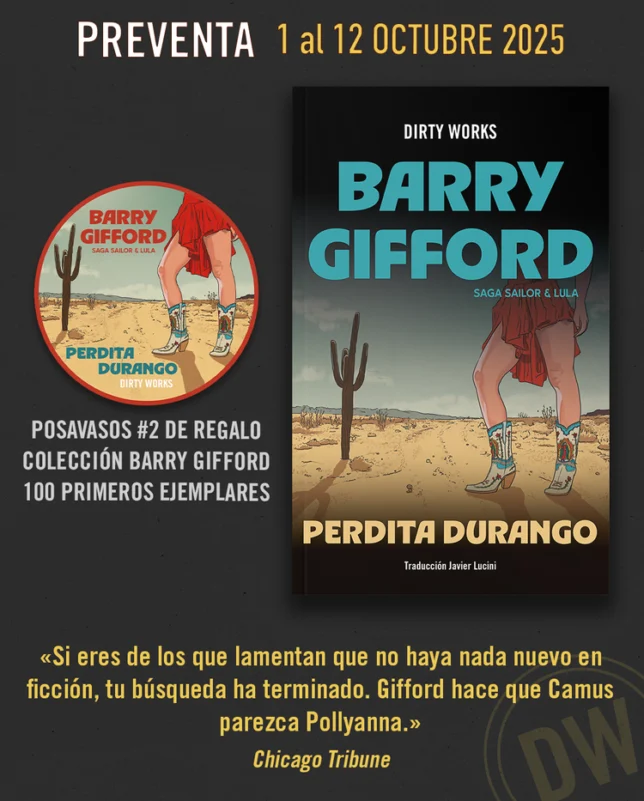 De ahí que, cuando Dirty Works anunció que iba a sacar la saga completa de Sailor y Lula de Barry Gifford, no me lo pudiera creer. ¡Toma, toma y toma! A título por mes, ya están publicando uno de los monumentos del noir estadounidense del pasado siglo. En septiembre salió la fundacional ‘Corazón salvaje’ con la que todo comenzó y este mes tendremos la nueva edición de ‘Perdita Durango’. Terreno conocido, pero con nueva traducción de Javier Lucini y un fascinante diseño pulp de las portadas, de Nacho Reig. Libros únicos, diferentes y especiales. Libros que ya son objeto de colección gracias a las ilustraciones de Jesús Moreno, ‘El Ciento’.