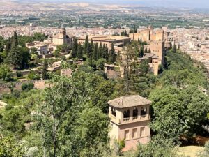 Me encanta la vista de la Alhambra desde aquel entorno, cargado de magia. Se la contempla por la espalda y desde arriba, por lo que ofrece una perspectiva diferente y original. Es como mirar una maqueta, pero a tamaño natural.