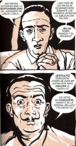 Me ha encantado releer ‘La huella de Lorca’, que no es un biopic ni una biografía al uso. Es un repaso por momentos singulares de las vidas de algunas personas que se vieron influenciadas por su contacto con él. Carlos Hernández y El Torres acuden a personajes muy diversos, del botones de un hotel cubano a los imprescindibles Buñuel y Dalí de la Residencia de Estudiantes. Nella, la fiestera neoyorquina o Manolo, que tan importante papel desempeña. Y un protagonista muy especial con el que empieza y termina un tebeo excelente que, como siempre pasa con los buenos cómics, se enriquece y se expande con cada nueva lectura.