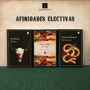 Ese mismo día, Impedimenta, la editorial que ha tenido el tino y el acierto de publicar ‘Malaventura’, había subido a redes una imagen que me provocó taquicardia. La portada de ‘Malaventura’, con una serpiente bicéfala sobre un lecho de flores rojas, aparecía junto a las de ‘Basilisco’, de Jon Bilbao, y ‘A lo lejos’, de Hernán Díaz; dos western noir prodigiosos que me hicieron muy feliz en los tórridos meses de verano. Afinidades electivas, efectivamente.