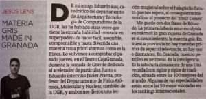 Lo volvimos a comprobar el pasado jueves, en el Teatro CajaGranada, durante la jornada de Gravite dedicada al acelerador de partículas. Junto a Eduardo intervino Javier Praena, profesor del Departamento de Física Atómica, Molecular y Nuclear, también de la UGR; y ambos nos dieron una lección magistral sobre el halagüeño futuro que nos espera, si conseguimos materializar el proyecto del Ifmif-Dones.