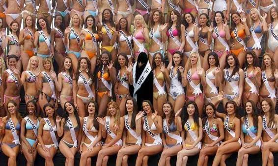 El colmo de la estupidez humana. Estoy en la playa y ya he visto un par de veces a un matrimonio musulmán, el marido en bañador, se mete en la playa, sale, se tumba, se da un paseo… la mujer, tapada hasta las cejas, sentada en una silleta vigilando a los niños… no comment.
