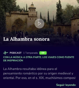 Lo primero que voy a escuchar son los ‘Ecos’ de Jorge Carrión y, por supuesto, me iré con la música a otra parte para visitar ‘La Alhambra sonora’ que, efectivamente, los viajes son fuente de inspiración. Les dejo, que 600 horas de contenido son mucha tela y se me está haciendo tarde.