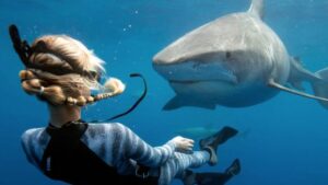 A mí, no tengo ni idea de por qué, Instagram me invita a ver vídeos random de una mujer que bucea entre tiburones y detiene su amenazador avance a través de la imposición de manos en su morro. Me relaja verla, tan pichi, acariciando el lomo de los escualos como si fueran perrillos patas arriba.