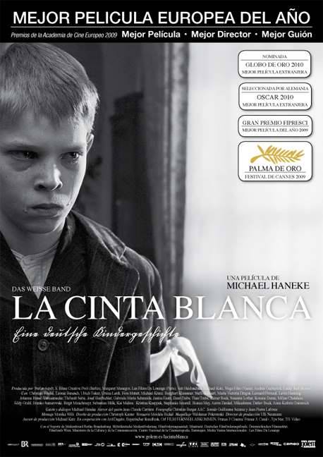 Totalmente de acuerdo en cuanto a la cartelera de Granada y al film de «La cinta blanca». La ví el viernes y me pareció extraordinaia, con un blanco y negro excepcional y sobrecogedora. En realidad, en el medio rural se siguen reproduciendo, aunque en menor medida, conductas tan opresivas y culposas como en la Alemania de principios del siglo XX. En cierta forma, ahí está el germen de movimientos políticos posteriores y de efectos históricos horrendos, en los que la delación era instrumento fundamental.