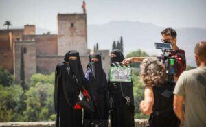Y luego está la segunda temporada de ‘La Unidad’, en la que Granada es uno de los escenarios. ¡Qué impresión, ver a las tres mujeres de El Hatch vestidas de negro, completamente tapadas, mientras pasean por Puerta Real, frente a Correos y el hotel Victoria. Ese luto mortificante que contrasta con los vivos colores de un cartel de Cervezas Alhambra que anuncia una fiesta popular.