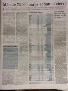 ¡Qué pena, qué melancolía, qué rabia, qué coraje! Y qué diferente, el sentido de cerrar un bar. La expresión «golfo cierrabares», castiza, canalla y divertida; contrasta con esta otra, que muestra la triste realidad de una crisis que, dicen, ya está cediendo. – ¿Dónde está la crisis? -sostiene siempre alguien… que no encuestra mesa en alguna…