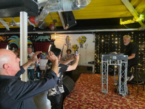 En concreto, ayer se celebraba una fiesta de pre-presentación del disco más reciente de Lagartija Nick, ‘El perro andaluz’. La mítica banda actúa el próximo sábado en el Teatro CajaGranada (compra AQUÍ las entradas, que va a ser algo muy grande y especial) y, una semana antes, sus miembros pincharon música y compartieron tragos y charla con la fanaticada. Llegamos justo cuando Eric terminó su sesión y le daba el relevo a Juan, que se entregó a la mesa de mezclas con pasión y emoción. Como decía Antonio, “lo dio todo”.