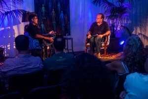 Una birra, unas papas arrugás y un atún después; ya charlábamos como si nos conociéramos de toda la vida. Además, me quedé muy tranquilo: Eduardo García Rojas, encargado de hacerme la entrevista pública en la carpa montada en el exterior del Museo Arqueológico, resultó ser un cinéfilo de pro, además de un extraordinario conversador. Así que, yo, calmaooooo.