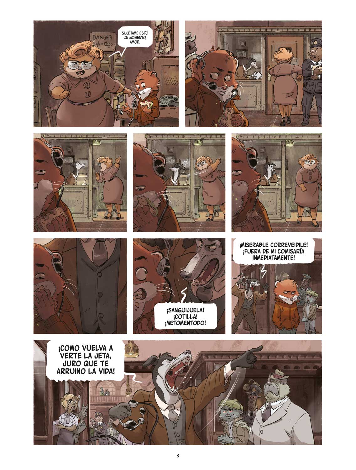 Juan Díaz Canales lo vuelve a hacer: sitúa a sus personajes de ficción, todos ellos con los rasgos y las facciones de los animales que mejor les pueden definir, en un contexto histórico claro y determinado. En este caso, durante la fiebre neopuritana que asoló la Norteamérica de los años posteriores a la II Guerra Mundial. Una cruzada liderada por el psiquiatra Fredric Werthman contra esos cómics de crímenes y terror que, según él, corrompían a los sanotes muchachos yanquis y perjudicaban gravemente su desarrollo cognitivo. Por el influjo de personas así se creó el Comics Code Authority. La censura pura y dura, o sea. Y estuvo vigente nada más y nada menos que hasta finales del siglo XX.